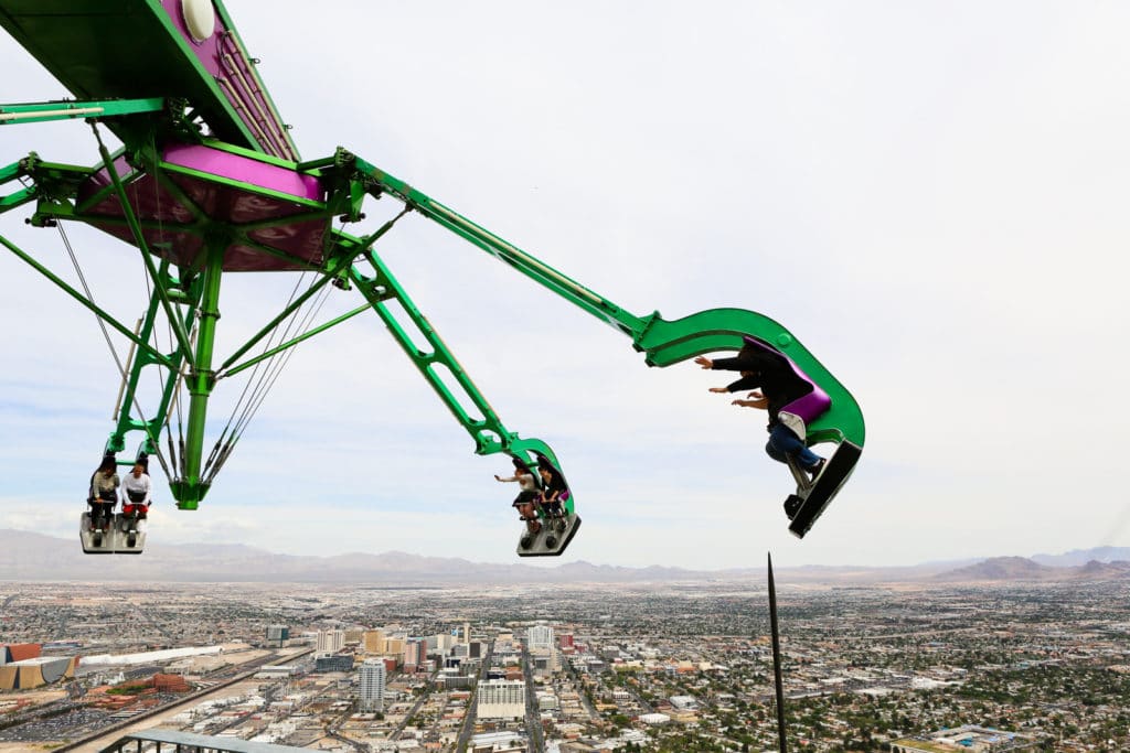 SkyJump: atração adicional paga à parte. É um salto ao ar livre de uma altura de mais de 252 metros da Strip e chega a uma velocidade de 63km/h. E aí, vai encarar?